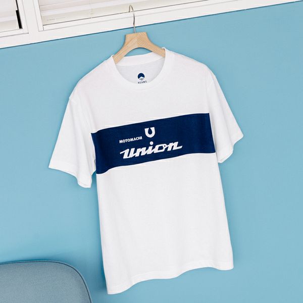 UNIONのショッピングバッグのデザインに着想を得たTシャツ。ドライな質感と程よい張り感が魅力の米綿を使用した日本製オリジナルBODYです。横浜をイメージした新色のネイビーです。