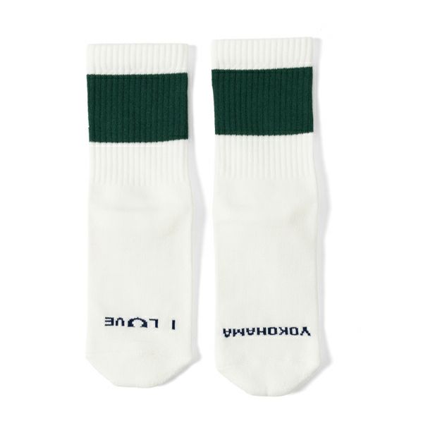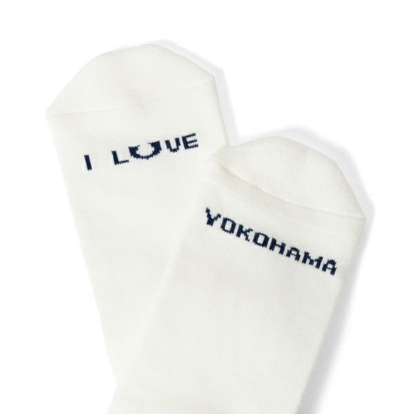 カジュアルスタイルにオシャレ感を添える、アイコン的アイテムのラインソックス。UNIONのロゴと、つま先に編み込まれた“I LOVE YOKOHAMA”が足元にさりげない遊び心と地元愛をプラスします。