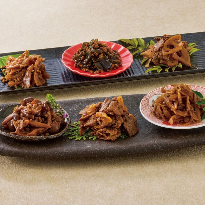 牛肉すきやき・牛肉ごぼう・牛肉れんこん・牛肉まいたけ・牛肉しめじ・牛肉こんぶ各55g