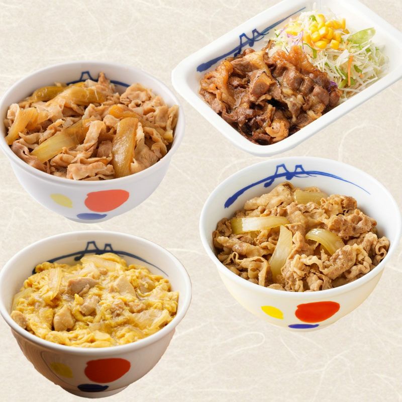 松屋で人気の丼のバラエティーセット 今なら牛カルビ1個おまけつき
