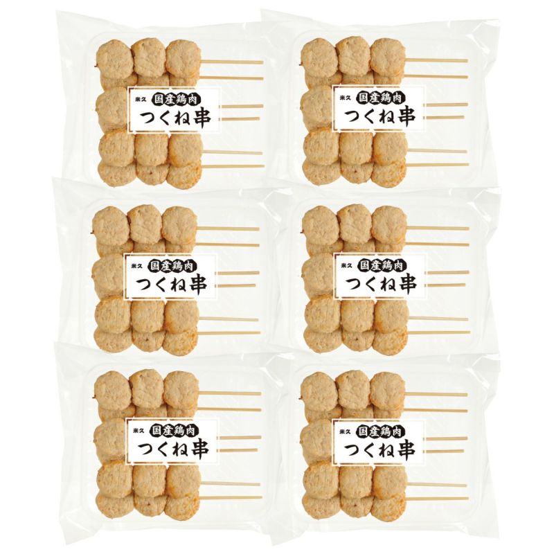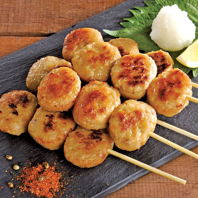 国産鶏肉を使用した、うま味がぎゅっとつまったつくね串です。解凍後フライパンでこんがり焼くと、外はカリッと、中はふんわりした食感をお楽しみいただけます。冷凍のままで電子レンジでもOKです。