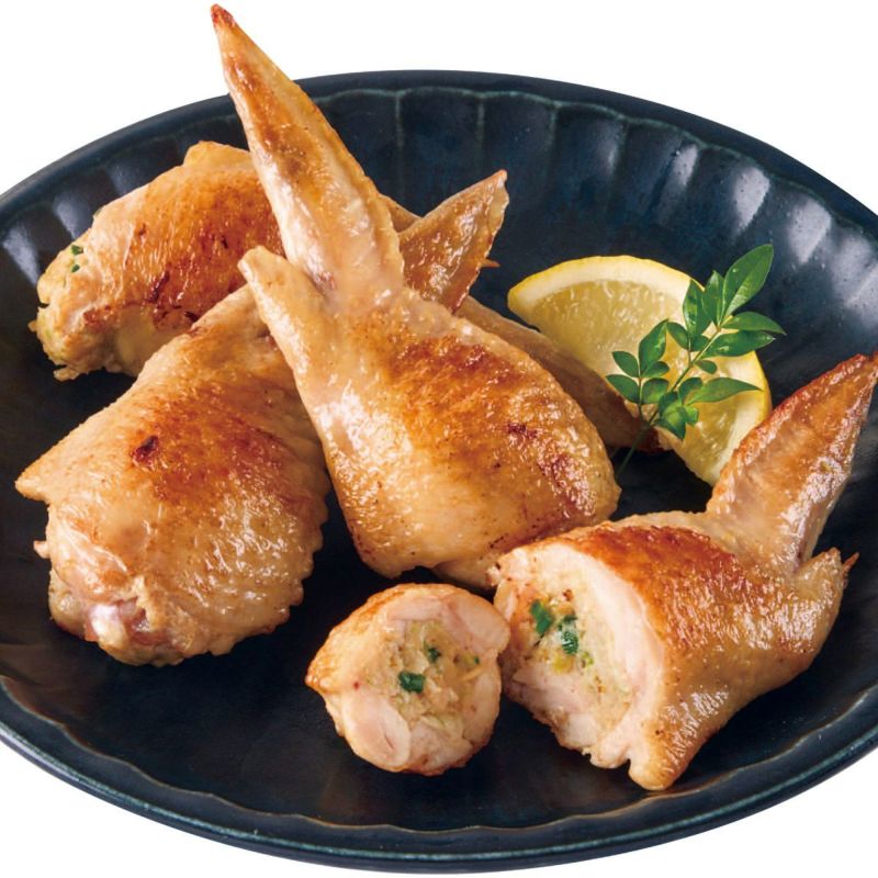 厳選した国産手羽先を骨抜きし、餃子の餡をたっぷり詰込んだ鶏肉専門店こだわりの逸品です。