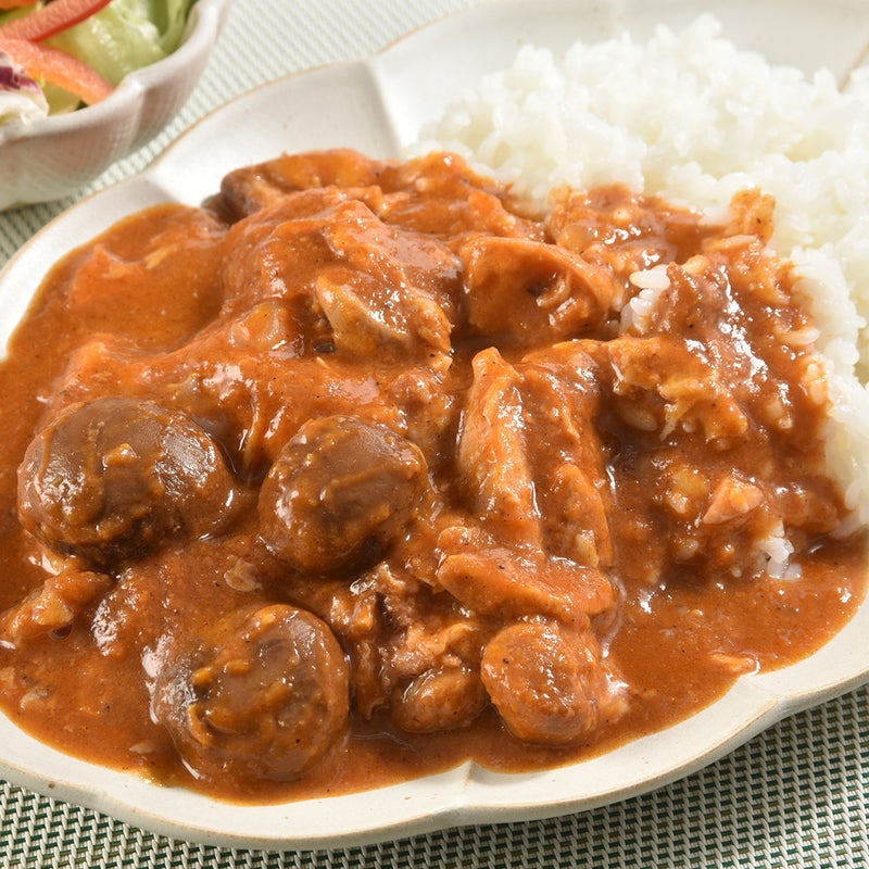 北海道の大地で育まれた知床鶏と、とかちマッシュ(ブラウン)が丸ごとゴロっと入ったエスニック風味のチキンカレー。北海道の恵みを凝縮して仕立てた素材本来の美味しさをお楽しみください。