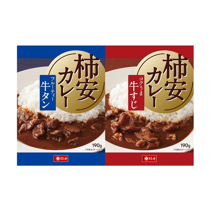 創業明治4年 肉の老舗「柿安」が作り上げたカレーです。柔らかく煮込んだ牛すじに、焙煎したカレーパウダーの香りと生クリームのまろやかさを合わせた、コクと旨みのある牛すじカレーと、スパイスを効かせたカレーソースに玉ねぎのコクとりんごなどの甘みを合わせた、フルーティーな牛タンカレーです。