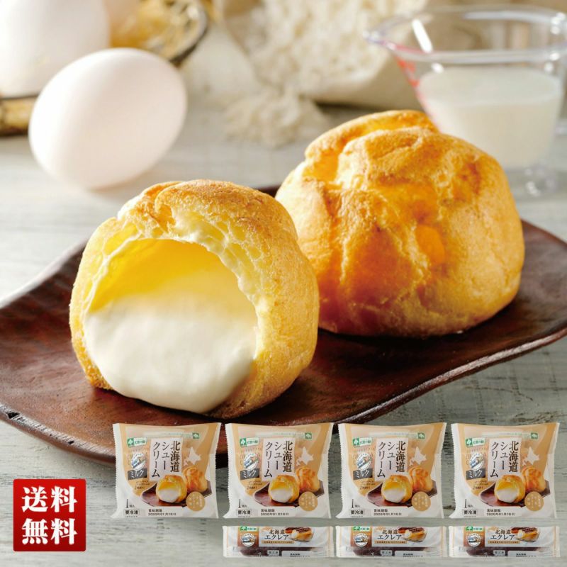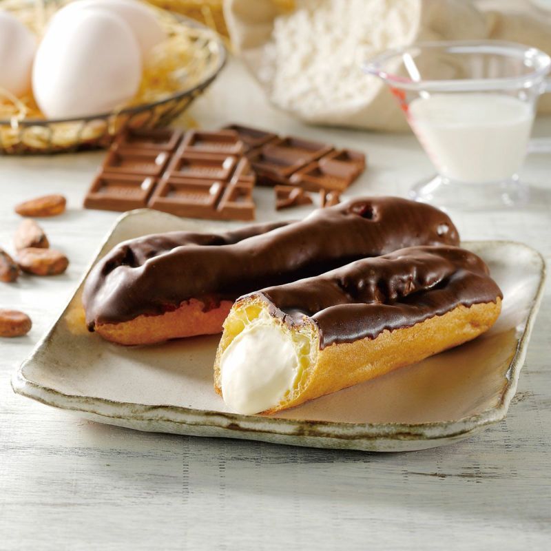 香ばしいシュー生地に濃厚なミルククリームを詰め込みました。クリームには北海道産生クリームを配合し、北海道のミルクの風味豊かに仕上げました。自家炊きカスタードをブレンドすることで、コク味をプラス。冷凍のままシューアイスとしても食べられるシュークリームと、自家製カスタードクリームは北海道産牛乳をたっぷりと配合したクリームと、カカオの香り豊かなビターチョコを、芳醇な香りの洋酒が更に引き立てるエクレアとのセットです。