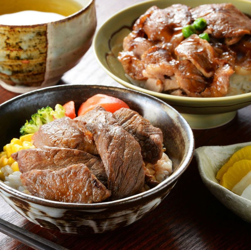 柔らかな北海道産牛肉のステーキ丼と、北海道名物豚丼。特性タレが食欲をそそる北海道の大地の恵みを使用した丼ぶりセット。電子レンジで温めるだけの簡単調理です。