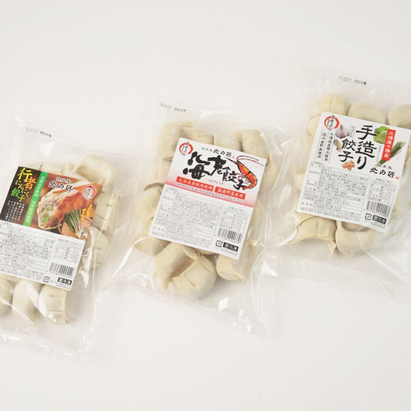 手作り餃子(15個入)、行者にんにく餃子(15個入)、海老餃子(15個入)