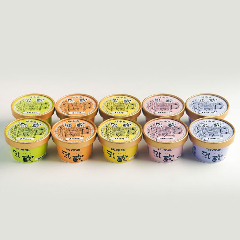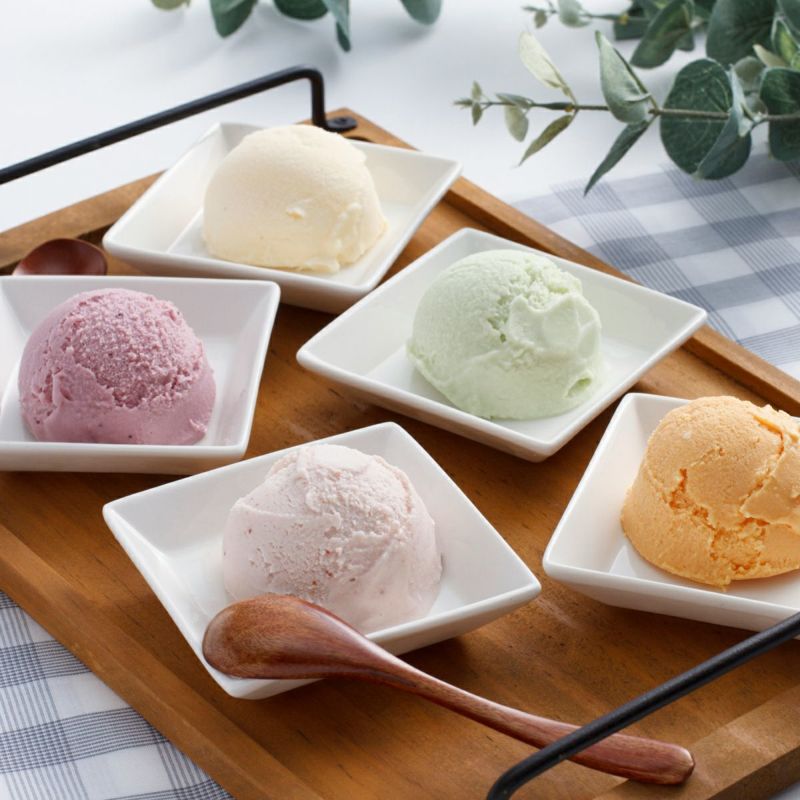 北海道牛乳を使用したアイスセット。定番のバニラに赤肉・青肉メロンやハスカップ、ストロベリーの4種のフルーツの味も楽しめます。