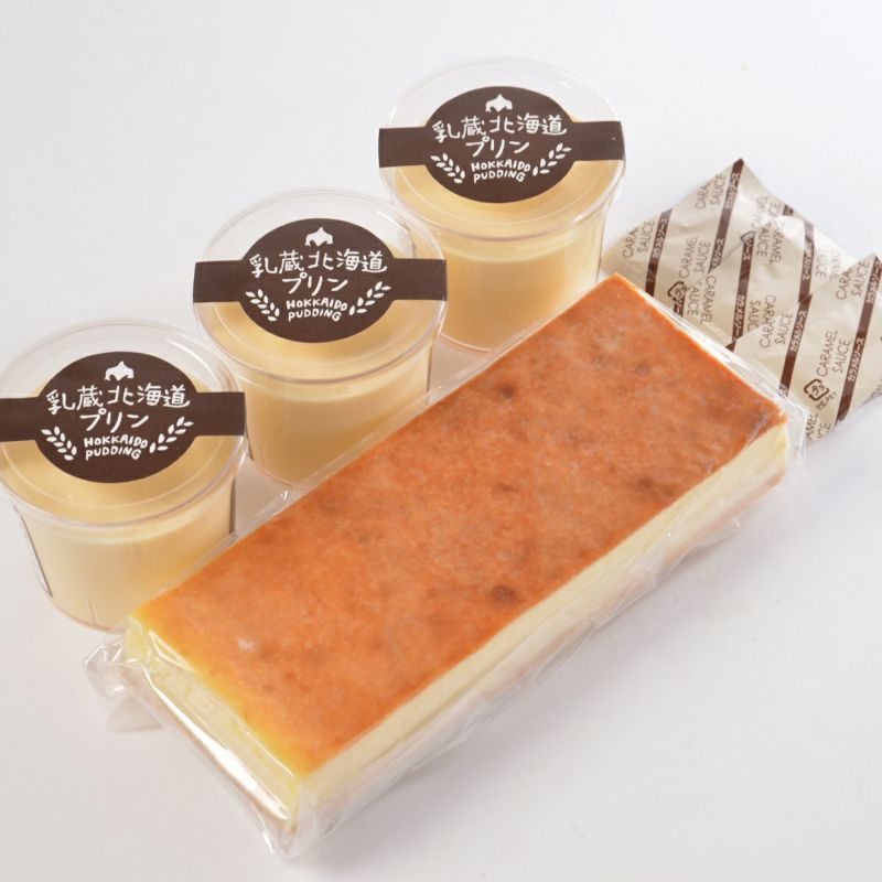 北海道産の牛乳を使用したとろける食感に仕上げたプリンと、コクのある濃厚なチーズケーキを詰合せました。チーズケーキは北海道産のチーズを使用し、しっとり焼き上げています。