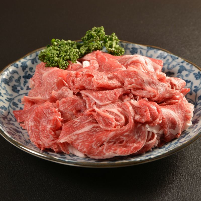 霜降りと赤身の絶妙なバランス。北海道の黒毛和牛 知床牛の切落しをお届けします。