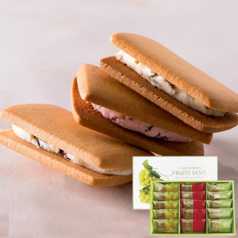 なめらかで口当たりのやさしいフルーツクリームと、香り豊かな果肉を、香ばしいクッキーでサンドした、銀座千疋屋オリジナルのフルーツサンド詰合せです。