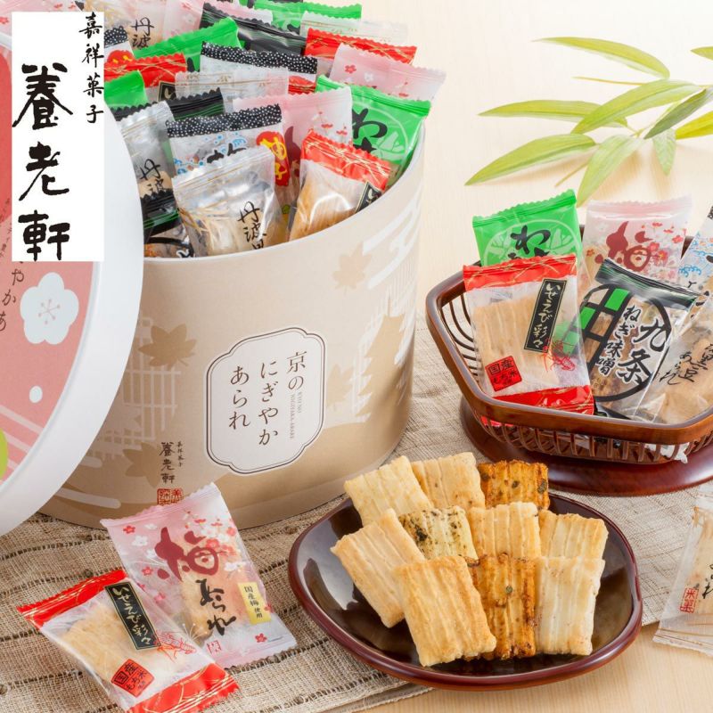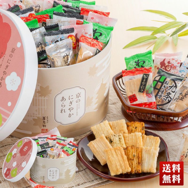 和をイメージした可愛いパッケージに、色んな味のあられをいっぱい詰め込みました。ご家族やご友人で楽しめる、にぎやかなギフトです。