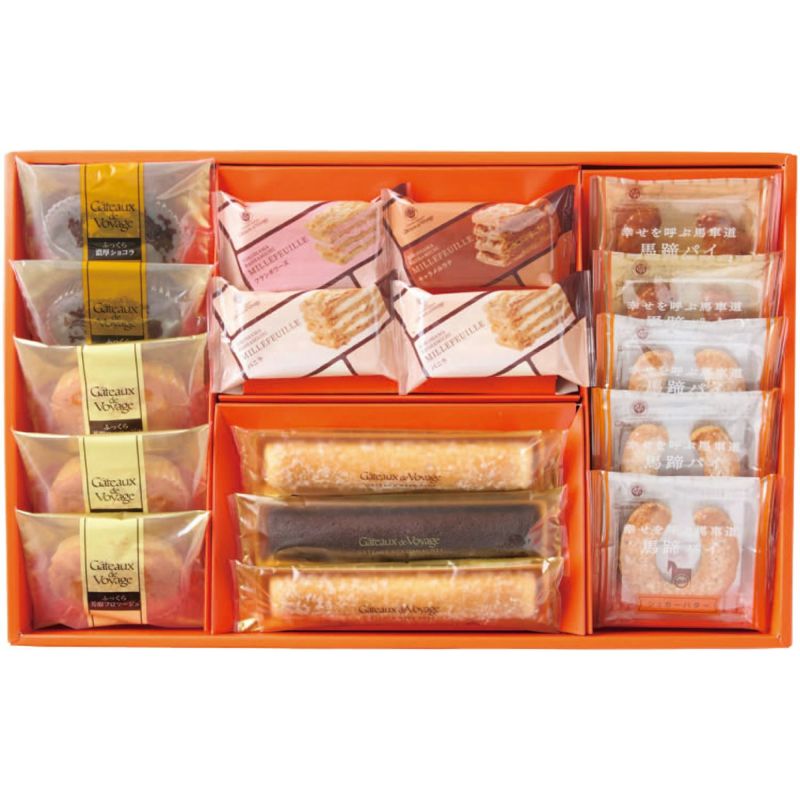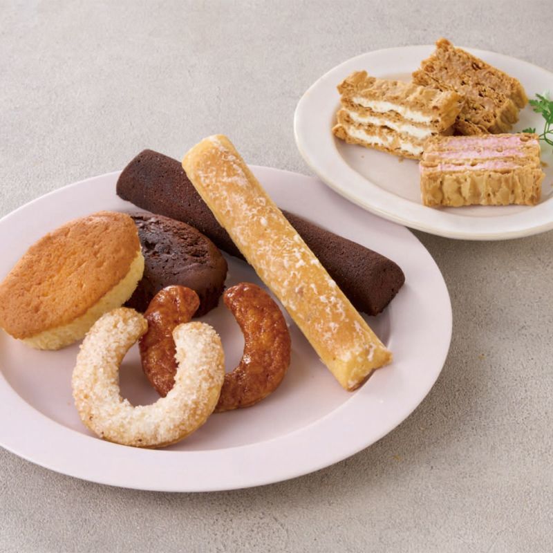 横浜馬車道ミルフイユ(バニラ×2・フランボワーズ・キャラメルラテ)、幸せを呼ぶ馬車道馬蹄パイ(シュガーバター×3・キャラメル×2)、ガトースフレ(ふっくら芳醇フロマージュ×3・ふっくら濃厚ショコラ×2)、ガトーウィークエンド(オレンジ)×2、ガトーオガナッシュ
