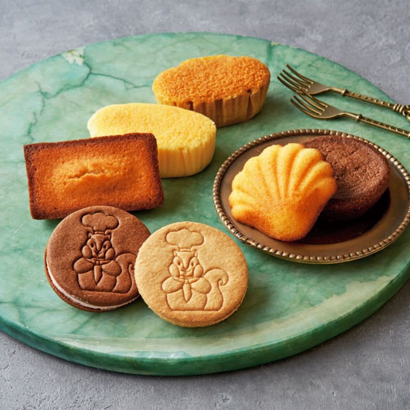シンマドレーヌ・シンフィナンシェ・スフレフロマージュ・スフレキャラメル×各2、ガレット(バニラ×2・チョコ)、チョコキャラメルサンド(プレーン・ストロベリー)×各2