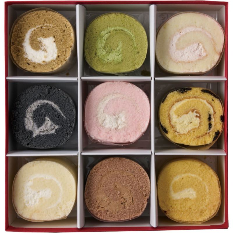 お好みのデザートでトッピング!積みあげて楽しい9種のロールケーキタワーです。