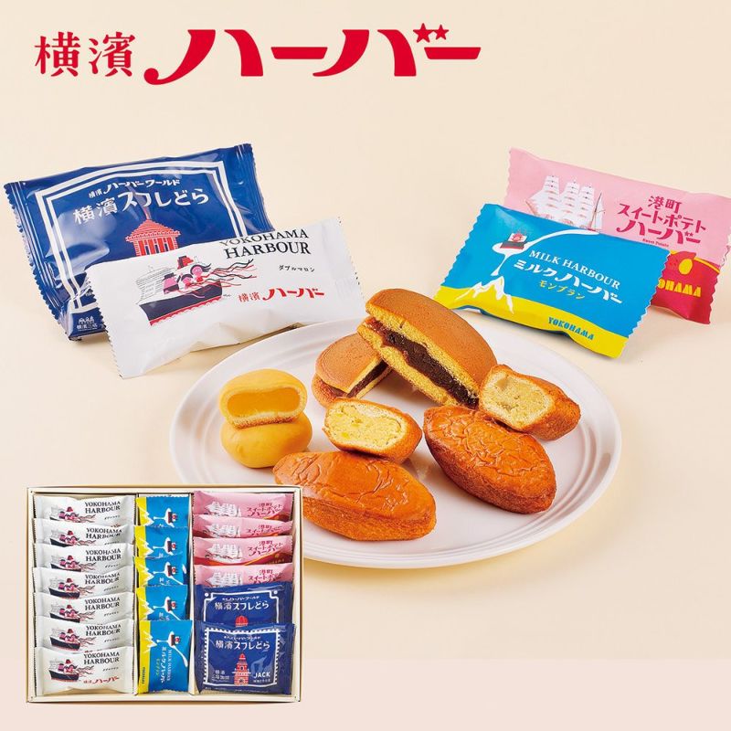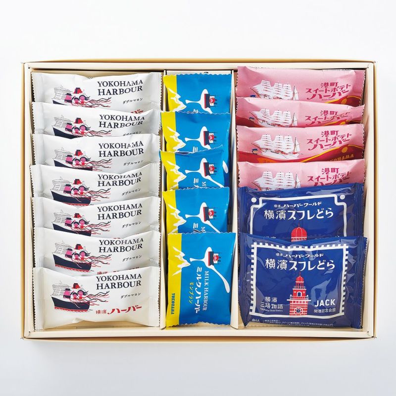 横濱ハーバーダブルマロン×7、港町スイートポテトハーバー×4、ミルクハーバーモンブラン×5、横濱スフレDORA×2、手提げ袋付