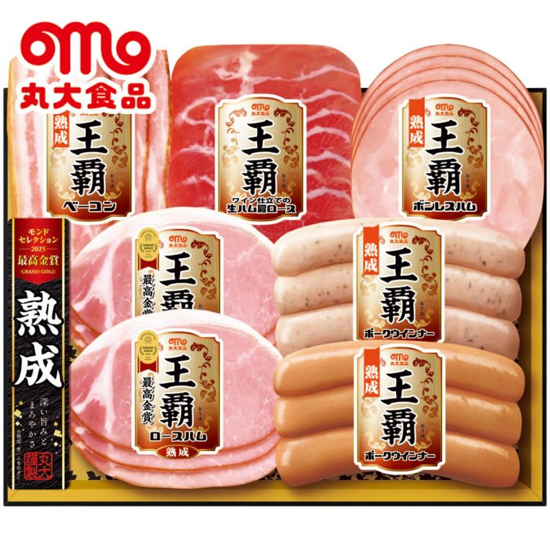 熟成ロースハム40g×2、熟成ベーコン45g、ワイン仕立ての生ハム肩ロース・熟成ボンレスハム各50g、熟成ポークウインナー(プレーン・ハーブ)各102g