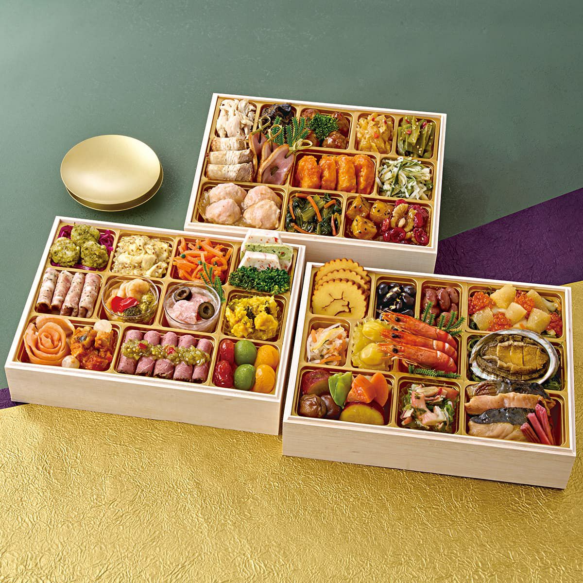 他の画像を見る 「ホテルニューオータニ」和洋中三段重 本体価格20,000円参考税込価格21,600円オンライン限定5%OFFで 本体価格19,000円 参考税込価格 ¥ 20,520 税込 お気に入りに登録する