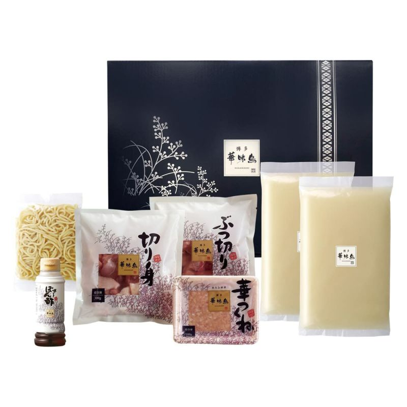 約3~4人前/華味鳥(切り身・ぶつ切り)各300g、華つくね200g、水たき生スープ600g×2、博多ぽん酢220ml、ちゃんぽん麺150g