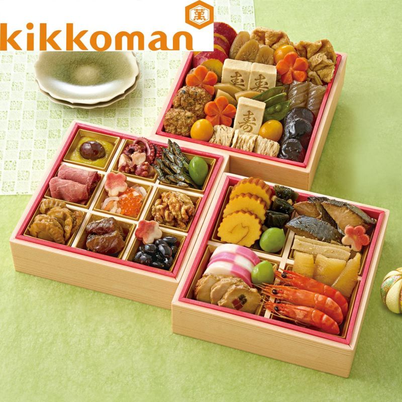 三段重、お重サイズ(外寸):縦173mm×173mm×高さ173mm(内寸(1段):36mm)、(33品目)、(約3人前)【一の重】伊達巻、ひと口昆布巻、若桃甘露煮、減塩鰆照焼、梅麩、減塩たたき牛蒡、紅白かまぼこ、チキン二色巻、減塩数の子、減塩海老の旨煮 【二の重】きんとん、渋皮栗甘露煮、酢だこ、減塩田作り、若桃甘露煮、ローストビーフ、梅麩、紅白なます、鱒いくら醤油漬、くるみ煮、減塩帆立煮、減塩鱈の旨煮、黒豆煮 【三の重】さつまいも甘露煮、減塩五目きんちゃく、減塩牛蒡煮、金柑甘露煮、減塩梅人参、減塩寿高野豆腐、ねじりこんにゃく、減塩がんもどき煮、減塩筍煮、きぬさや、減塩椎茸煮、焼き湯葉煮