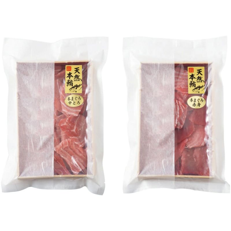 中トロ切落し・赤身切落し各200g(大西洋産原料を使用、神奈川県にて加工)