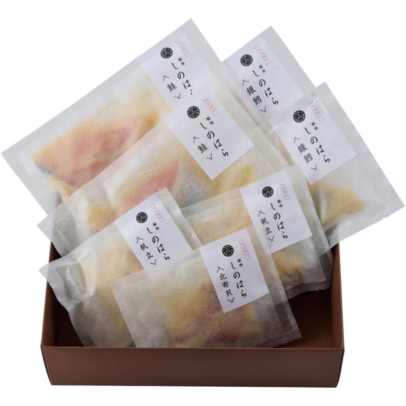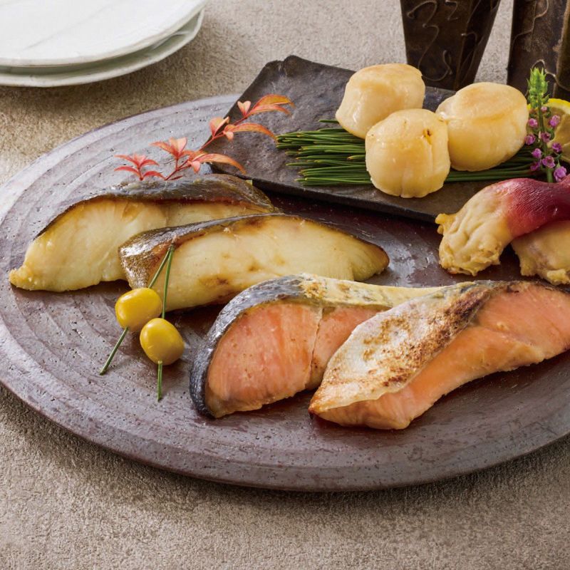 鮭・銀鱈 各2切入×各2、北寄貝(2個入)・帆立(4個入)×各2