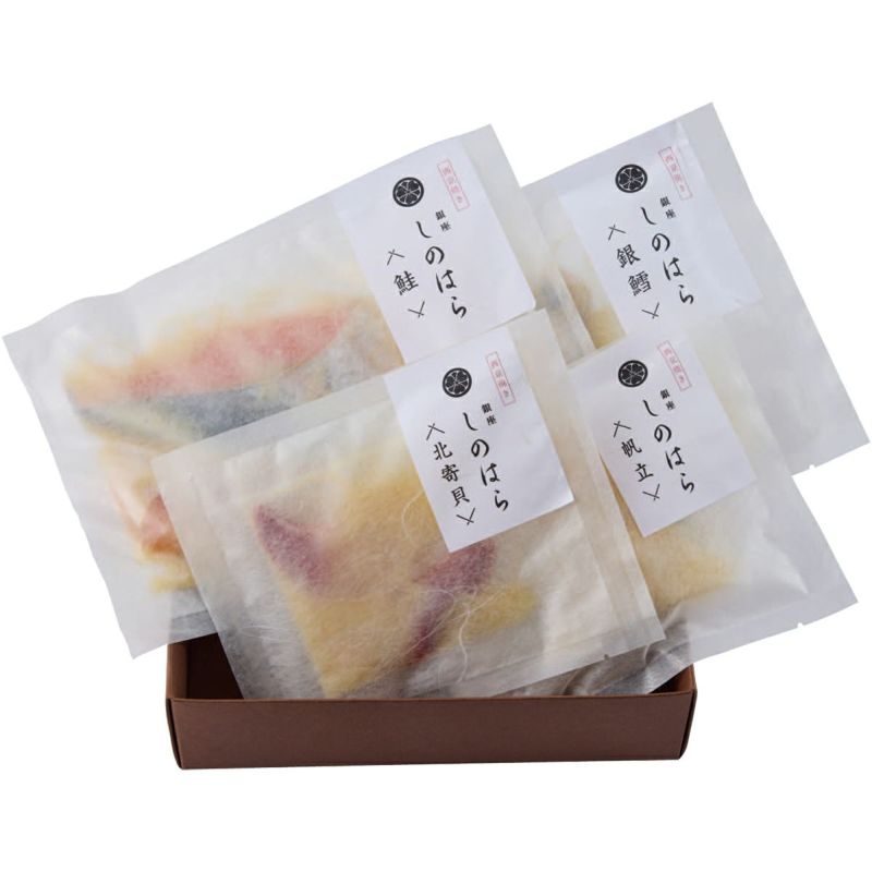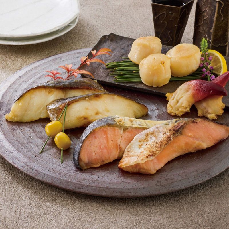 鮭・銀鱈 各2切入、北寄貝(2個入)、帆立(4個入)