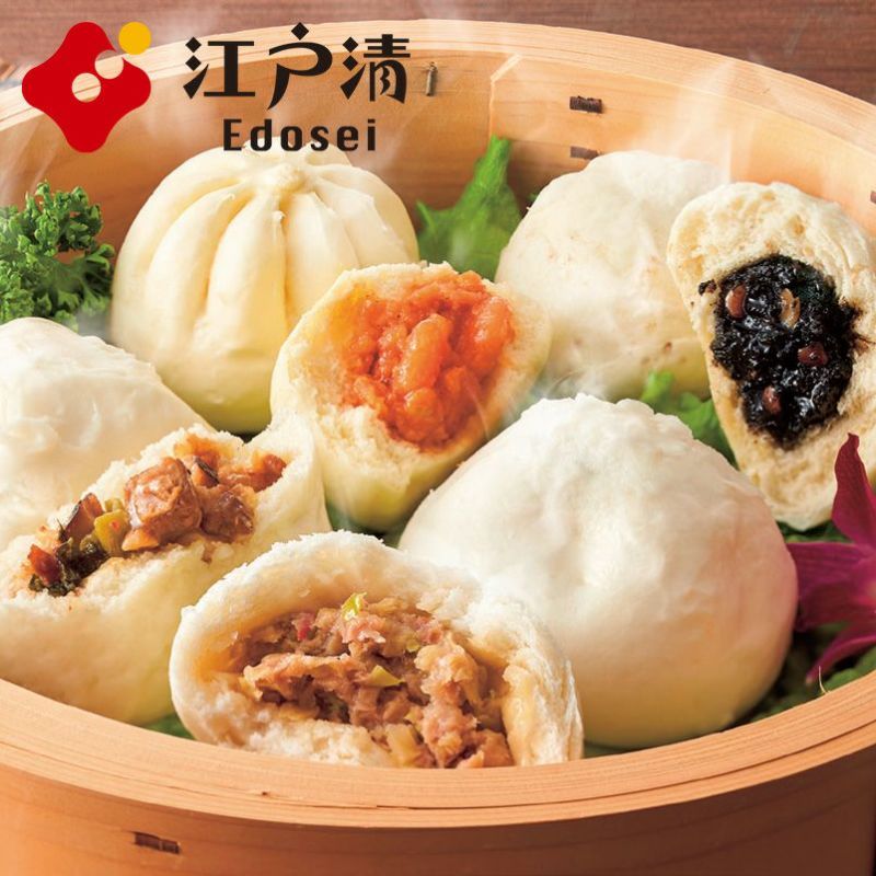 横浜中華街「江戸清」の中華まん4種をご家庭でお召し上がりやすいサイズにしてお届けします。