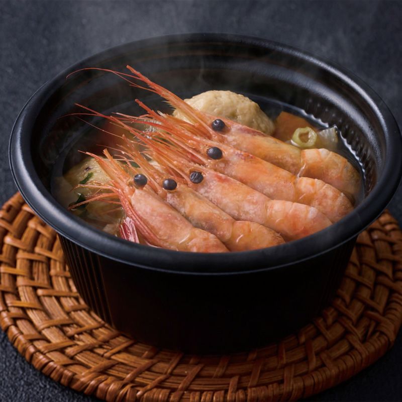 レンジで簡単にできる小鍋ギフト。北海道産牛を使用したすき焼き小鍋2食と、3種類の小鍋が選べるギフトです。甘えびと野菜が入った甘えび汁鍋です。