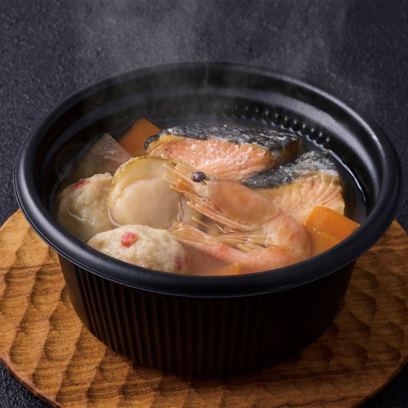 レンジで簡単にできる小鍋ギフト。北海道産牛を使用したすき焼き小鍋2食と、3種類の小鍋が選べるギフトです。エビや鮭に野菜が入った石狩鍋です。