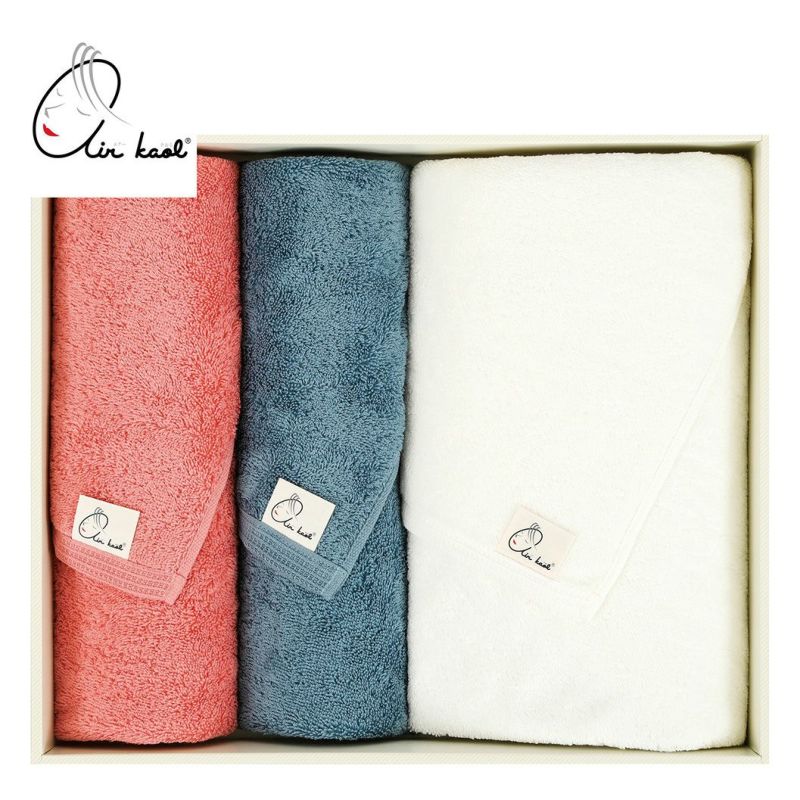 フェイスタオル×2(約34×85㎝)、バスタオル(約60×120㎝)、綿100%、日本製(今治)