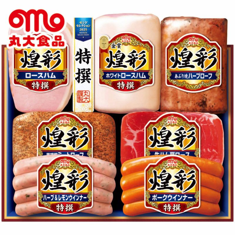 特撰ロースハム180g、特撰ホワイトロースハム350g、あぶり焼ハーブローフ170g、黒胡椒ミートローフ160g、特撰ハーブ&レモンウインナー・特撰ポークウインナー(プレーン)各80g、生ハム肩ロース36g