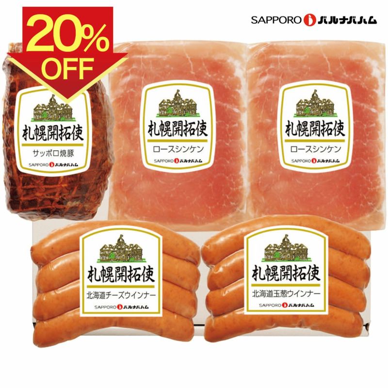サッポロ焼豚300g、北海道チーズウインナー・北海道玉葱ウインナー各100g、ロースシンケン40g×2