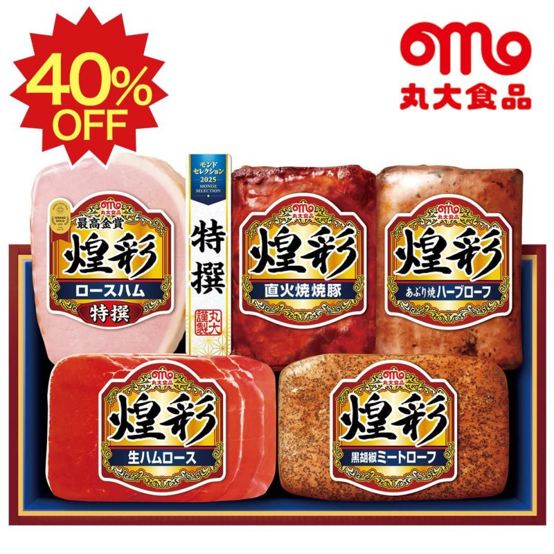 特撰ロースハム180g、直火焼焼豚・あぶり焼ハーブローフ各170g、黒胡椒ミートローフ160g、生ハムロース36g