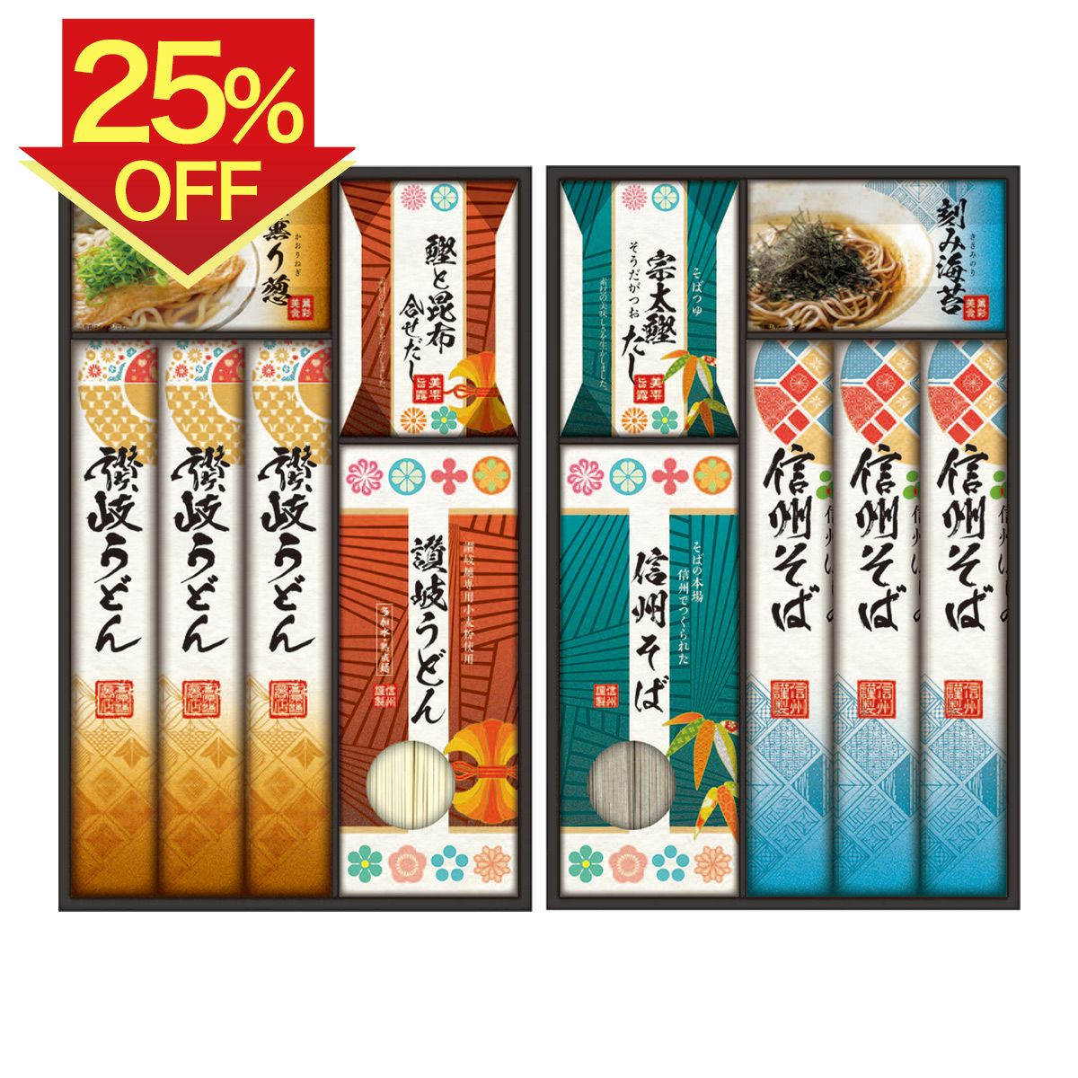 他の画像を見る 讃岐・信州 麺づくしギフト 発売元希望小売価格より25%OFFで本体価格3,000円参考税込価格3,240円さらにオンライン限定5%OFFで 本体価格2,850円 発売元希望小売価格 ¥ 4,320 のところ 参考税込価格 ¥ 3,078 税込 お気に入りに登録する