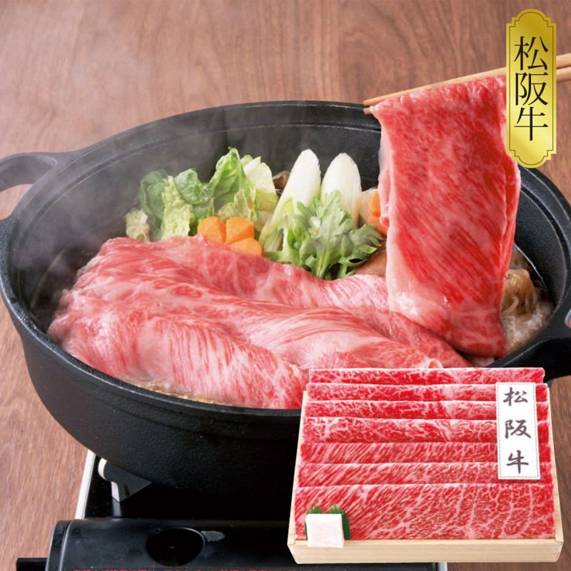 日本三大和牛のひとつ松阪牛を使用。肩ロース肉と肩肉の2種類をすき焼き用でスライスしました。