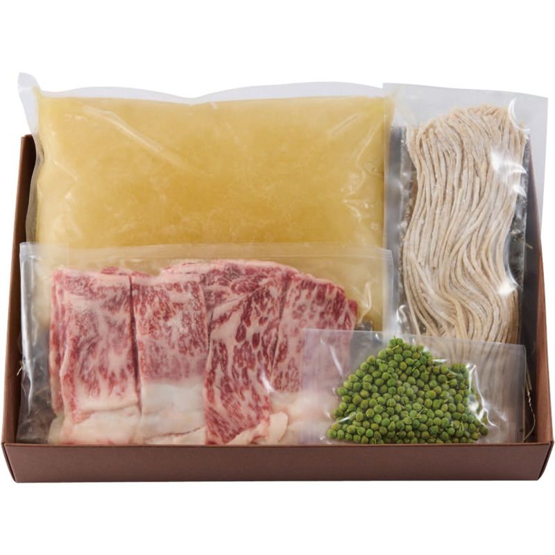 約2人前/黒毛和牛サーロインスライス200g(国産)、出汁1000g、実山椒20g、うどん120g