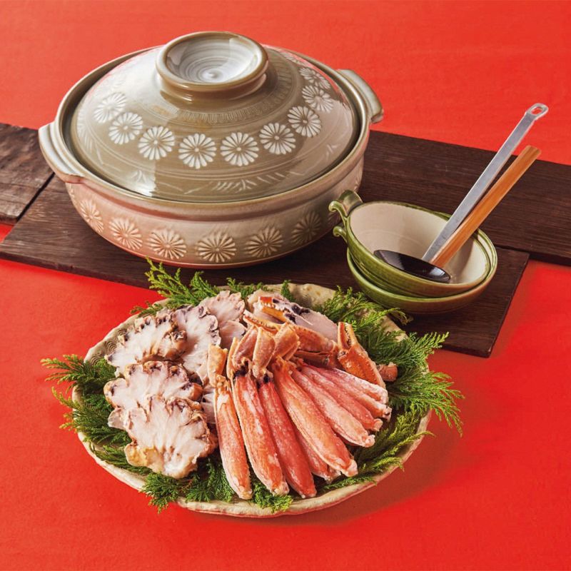 贅沢に蟹鍋を楽しめるように、生のずわい蟹を4つの部位に食べやすく半むき身にしました。
