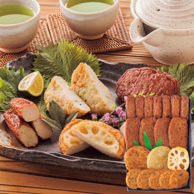 棒天7本、野菜丸5枚、つけあげ天4枚、ごぼう天・れんこん天・磯の香天
