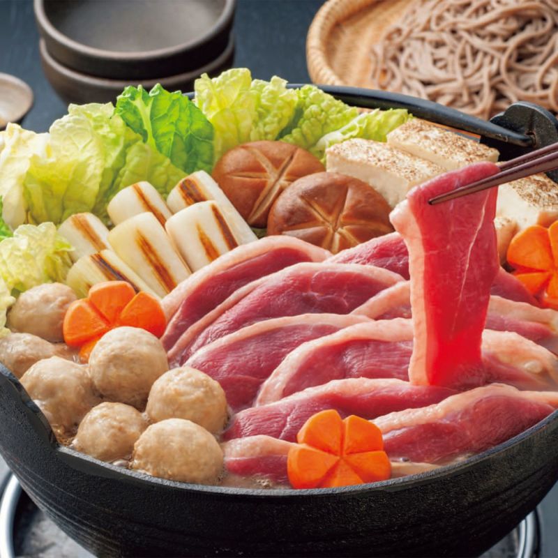 約4人前/合鴨ロース130g・合鴨つくね(6個入)・五割そば200g×各2、鴨だし(濃縮)30g・山椒0.2g×各4