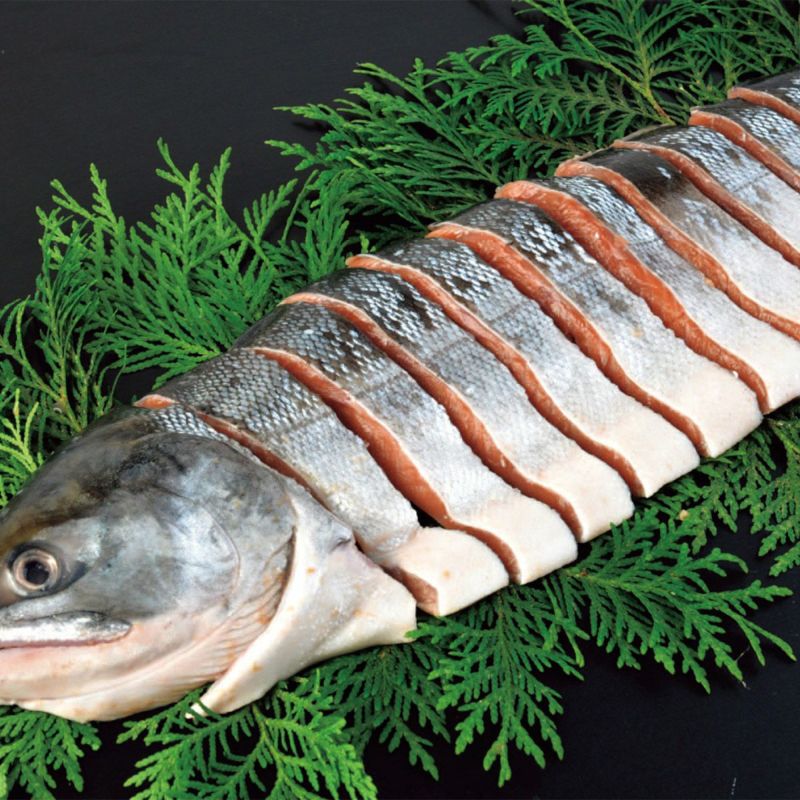 北海道根室沖でとれた鮭を半身切り身にしました。