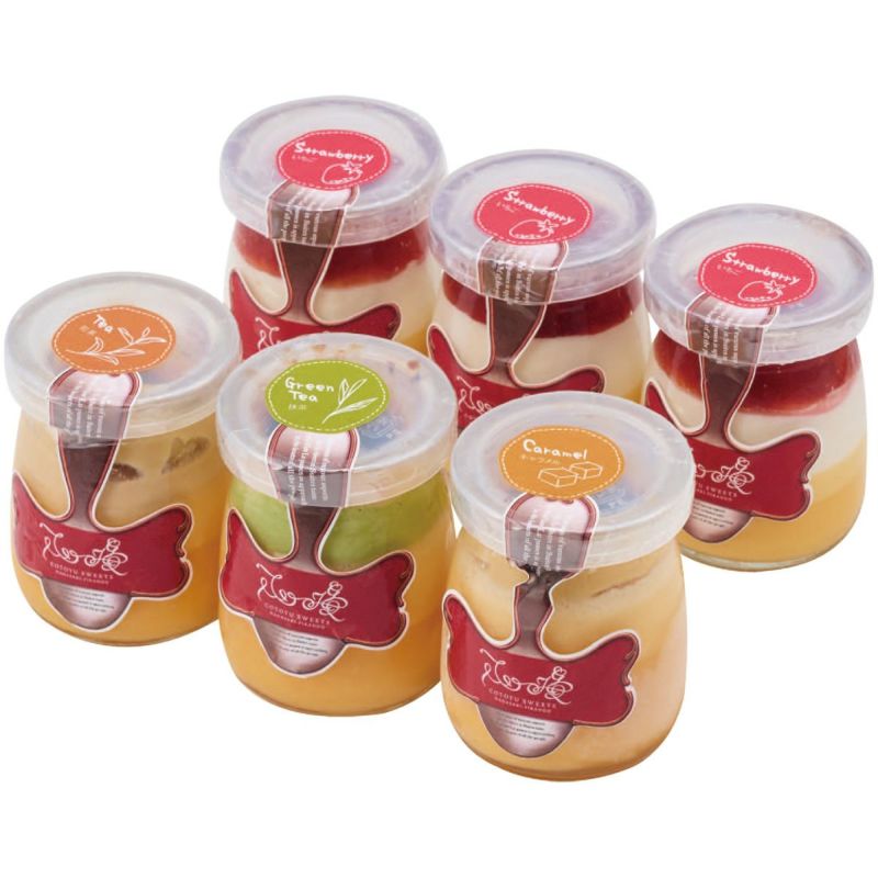 あまおういちごのチーズプリン90ml×3、キャラメルブリュレ(キャラメル・紅茶・抹茶)各90ml