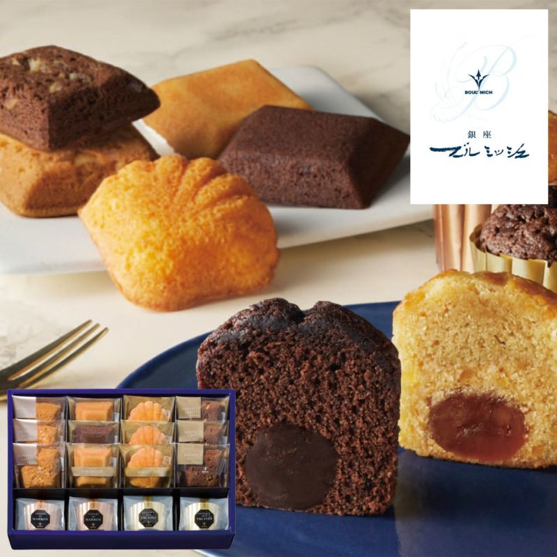トリュフケーキ・ガトーオマロン・フィナンシェ×各2、マドレーヌ×3、フィナンシェ(ショコラ)、ヌーヴェルガレット(バニラ・チョコ)×各3