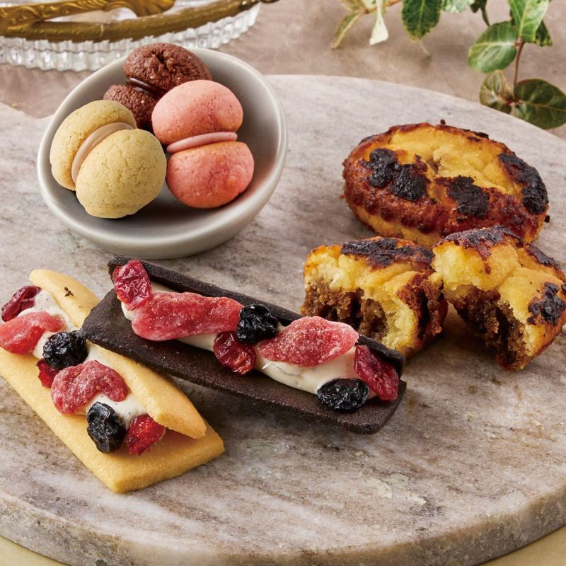 カカオ香るサクサク食感のサブレに、3種のベリーをバニラビーンズとホワイトチョコを使用したクリームにトッピングした冬季限定のカカオベリーウィッチ。華やかな見た目と味わいの2種のドレスアップクッキーをお楽しみいただけます。
