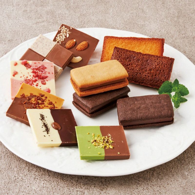 「ラ・メゾン白金」定番のタブレットショコラ、ショコラサンド、ショコラフィナンシェの詰合せです。