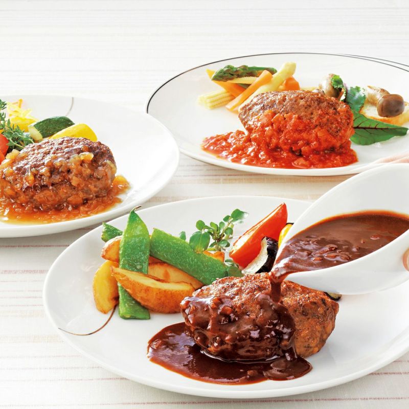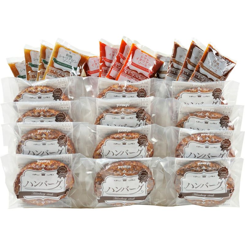 ■内容量:ハンバーグ130g×12、和風シャリアピンソース・トマトイタリアンソース・洋風デミグラスソース各40g×各4