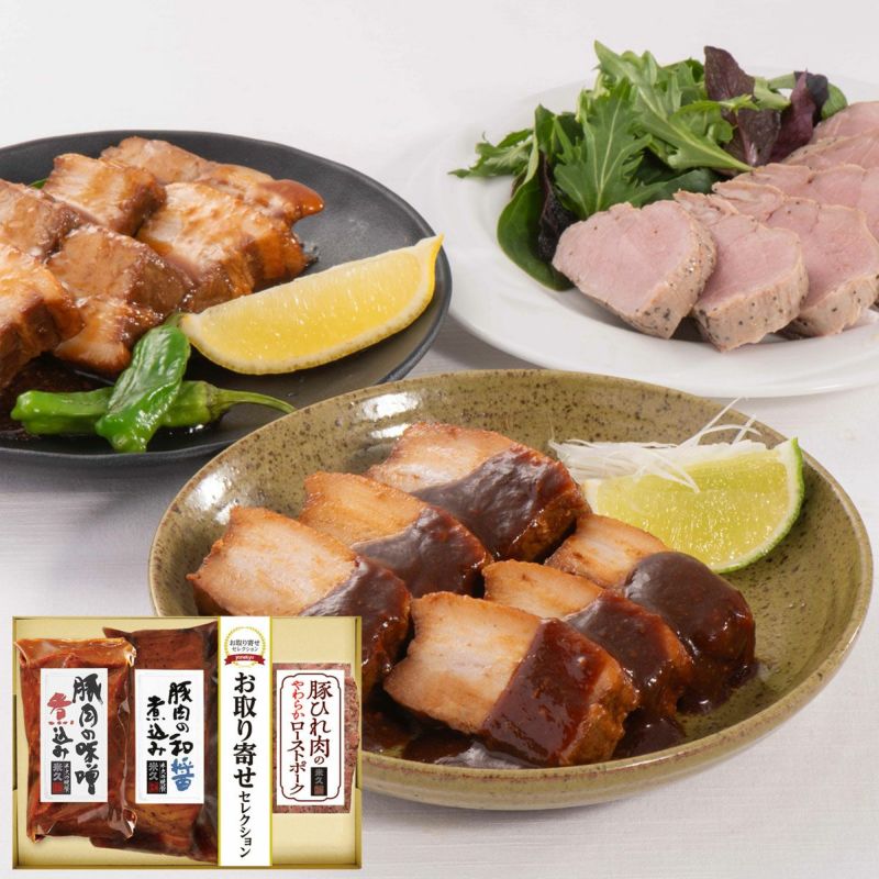■内容量:豚肉の味噌煮込み・豚肉の和醤煮込み各210g、豚ひれ肉のやわらかローストポーク100g