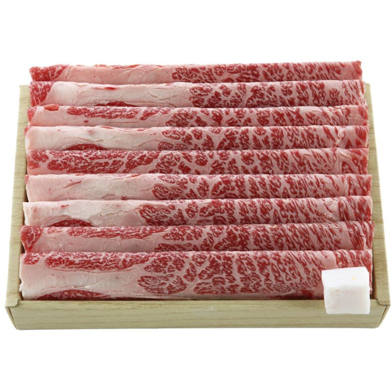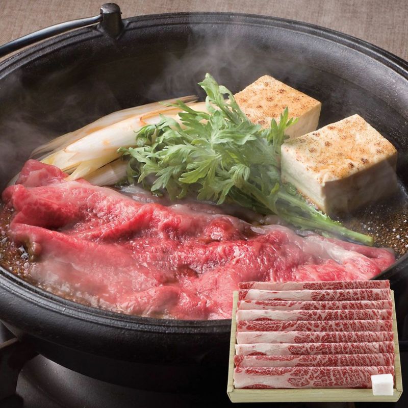 熊本県の自然豊かな大地の中で、放牧で肥育された「熊本あか牛」。肉質は赤身が多く、適度の脂肪分も含み、うま味とやわらかさ、ヘルシーさを兼ね備えています。肩ロース肉をすき焼き用にスライスしました。