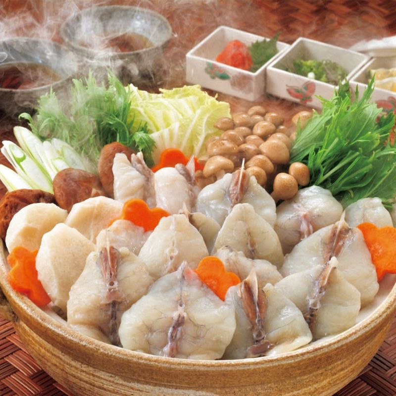 トラフグを使用したちり鍋です。オリジナルのポン酢でお楽しみください。