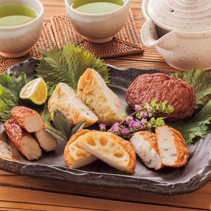 棒天7本、野菜丸5枚、つけあげ天4枚、ごぼう天・れんこん天・磯の香天